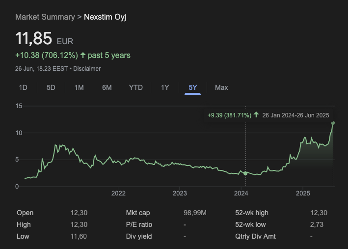 Pieni välitsekki, kun tästä ketjun avaamisesta on kulunut 1,5 vuotta. Kurssi noussut tuosta melkein +400%, eli ollaan vielä ainakin toistaiseksi 100x 10v -vauhdissa :partying_face: