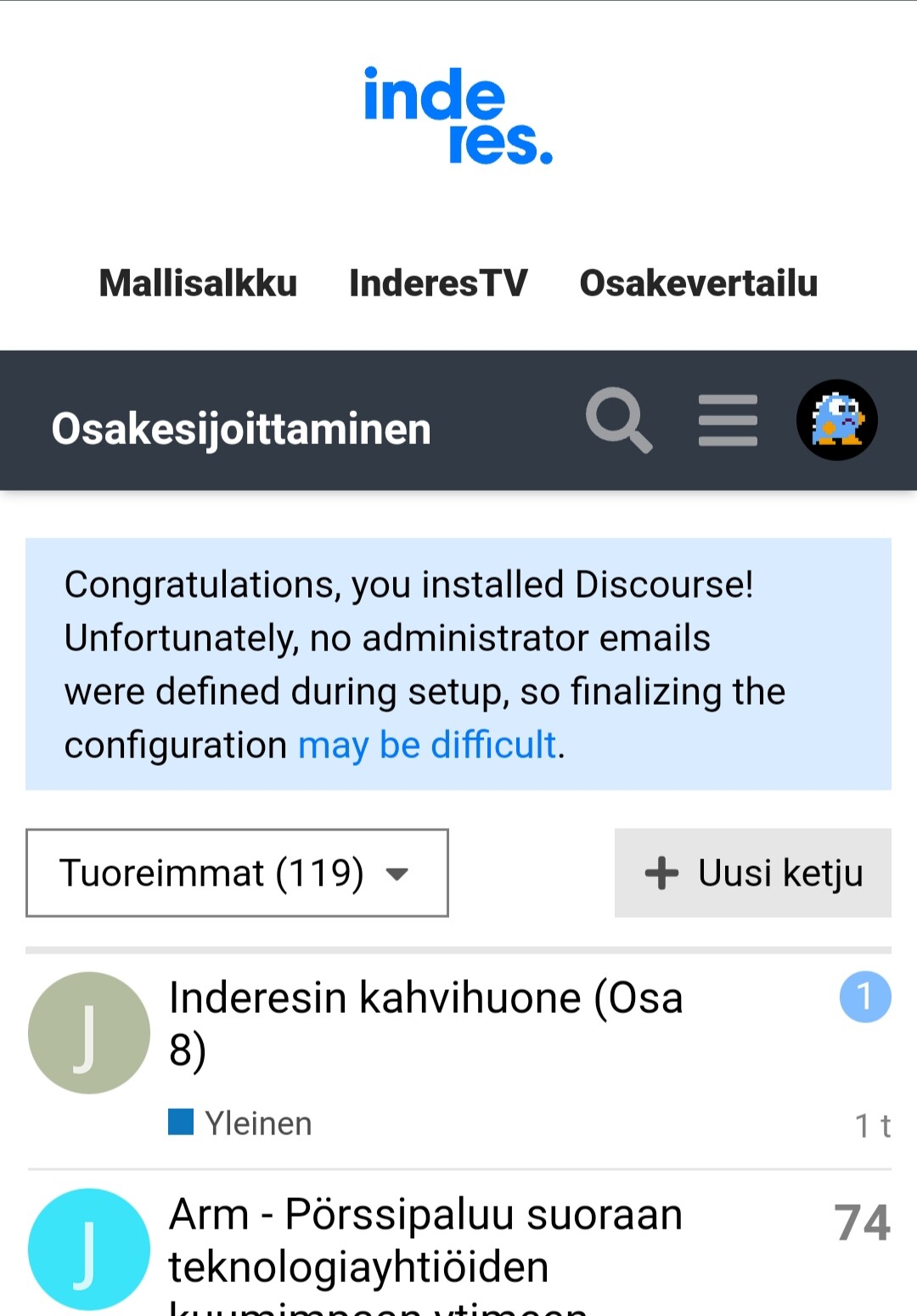 Minä katkon aikana lähettämässä kahvi/meemihuoneen sijaan roskasisältöäni info@inderes.fi -sähkpostiin.