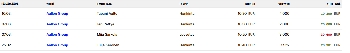 En lille rettelse: Sarkola ser ud til at have solgt de 3000 stk. til Rättyä og Aalto, altså er det ikke kun opkøb. Mon det alligevel er en smule positivt, hvis én sælger og to køber