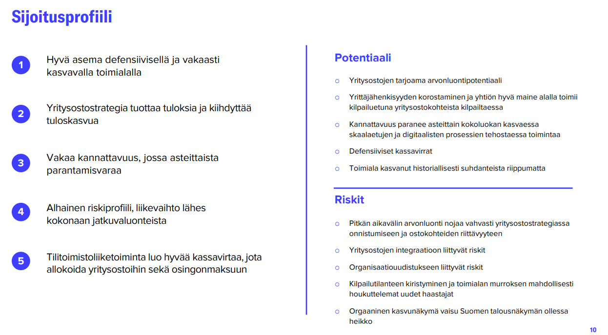 Ostettavaa löytyi jälleen. On hienoa, että Aallon on pystynyt napsimaan näitä tilitoimistoja nyt huonommassakin suhdanteessa, niin riskit siitä että kauppahinnat olisivat jotenkin suhdanteen pumppaavat ovat pienet.