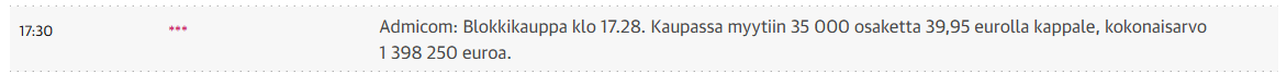 I wonder who might be letting go of their shares? In any case, Admicom is now “on sale” for those interested, compared to last week’s prices.