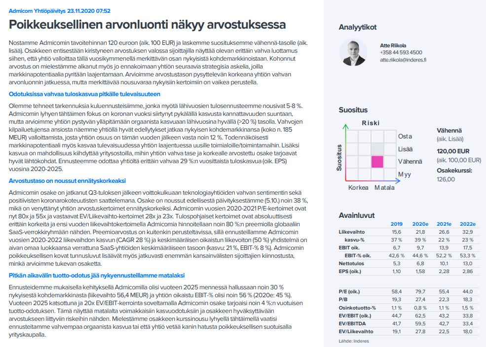 Tässä on Almanakan kirjoitus Admicomista ja sen Q1:stä
