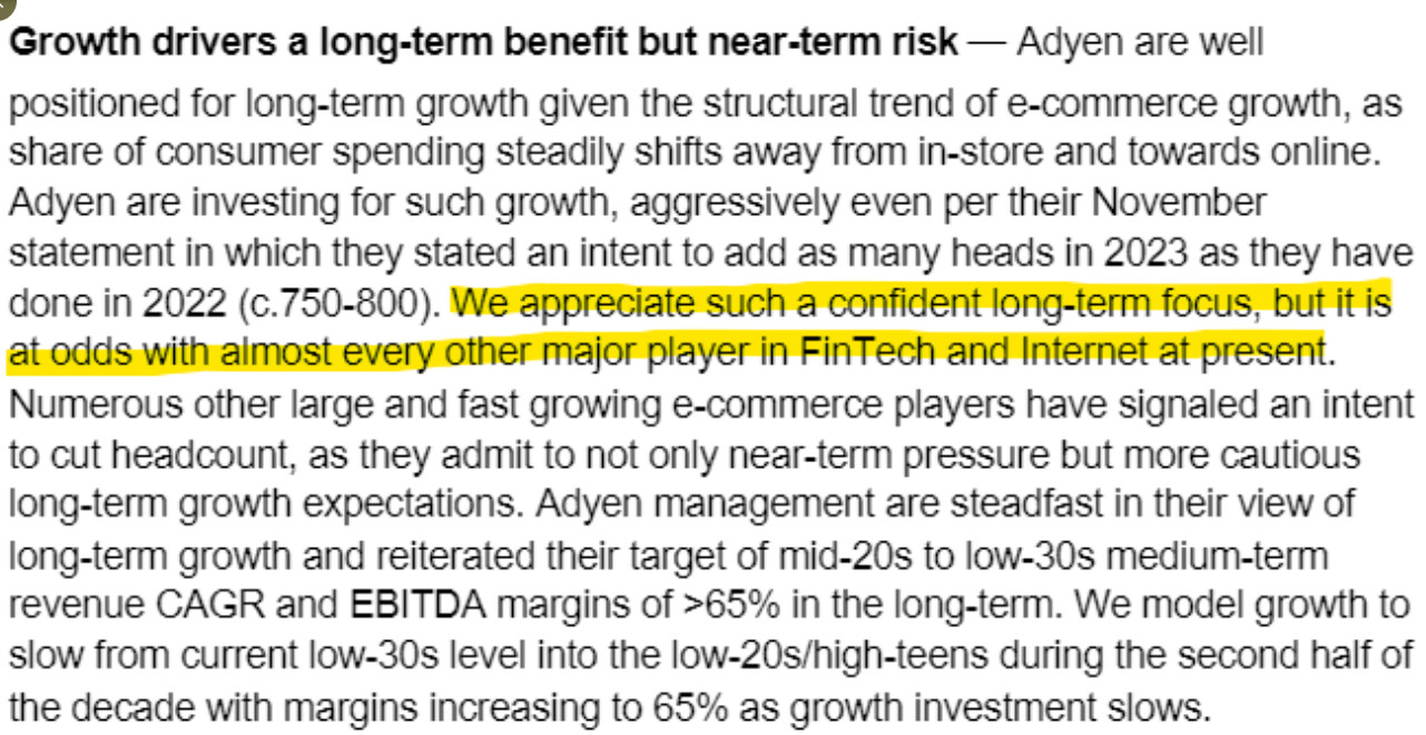 Here is also a good deep dive into Adyen: https://joincolossus.com/research/adyen_research.pdf