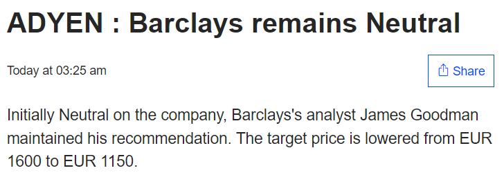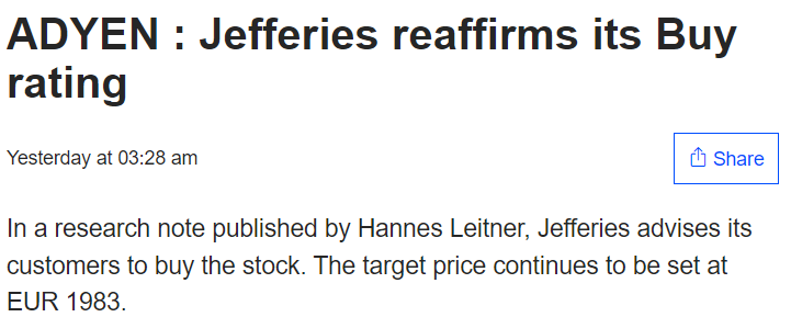 I still haven’t done proper valuation calculations for Adyen myself, but the company itself is solid. Their business philosophy is sound, the technology is good, and the CEO is very much on top of things and a veteran in the industry.