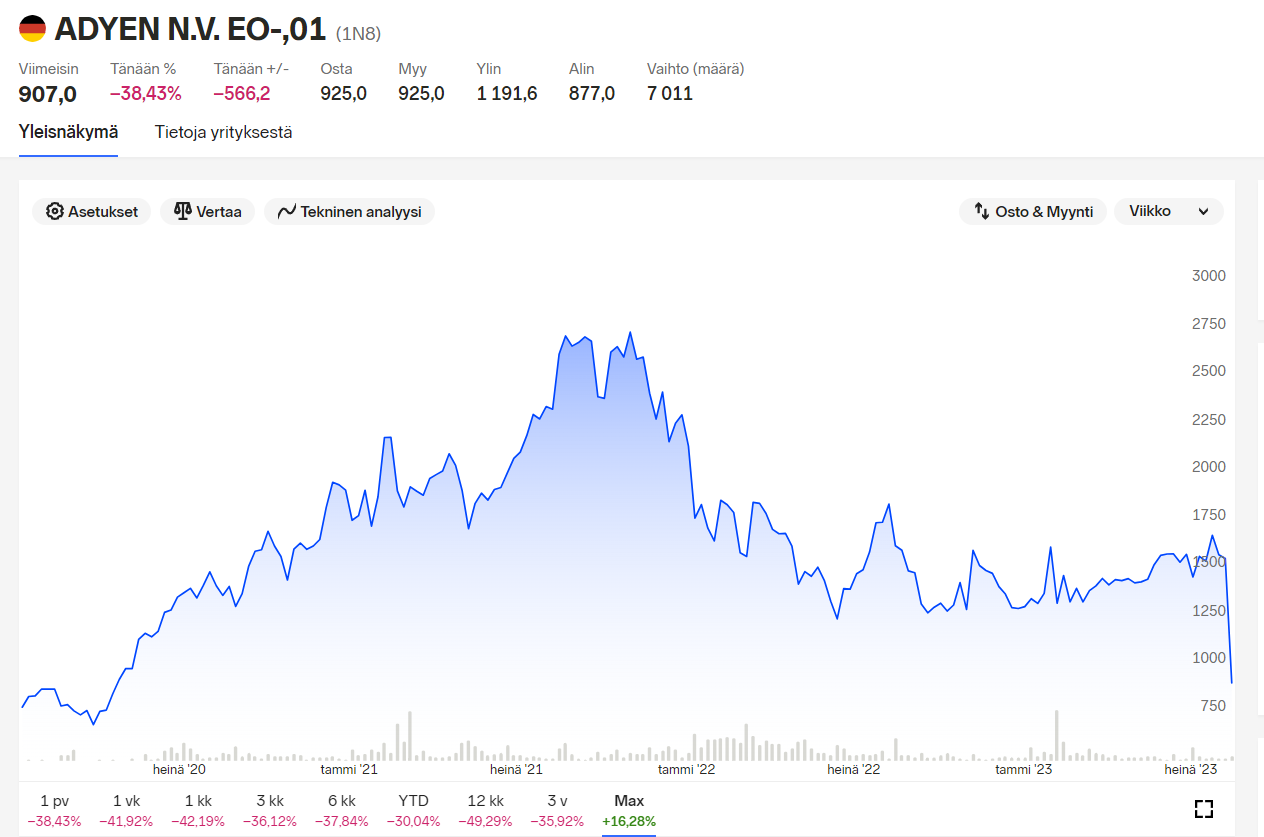 I believe Adyen will continue its growth investments and take the next step up through its current efforts. Management commented that the situation is similar to 2015-2017, when Adyen invested heavily in license acquisition and point of sale (I wonder what the correct Finnish term for this would be). These investments then began to bear fruit in 2018-2020.