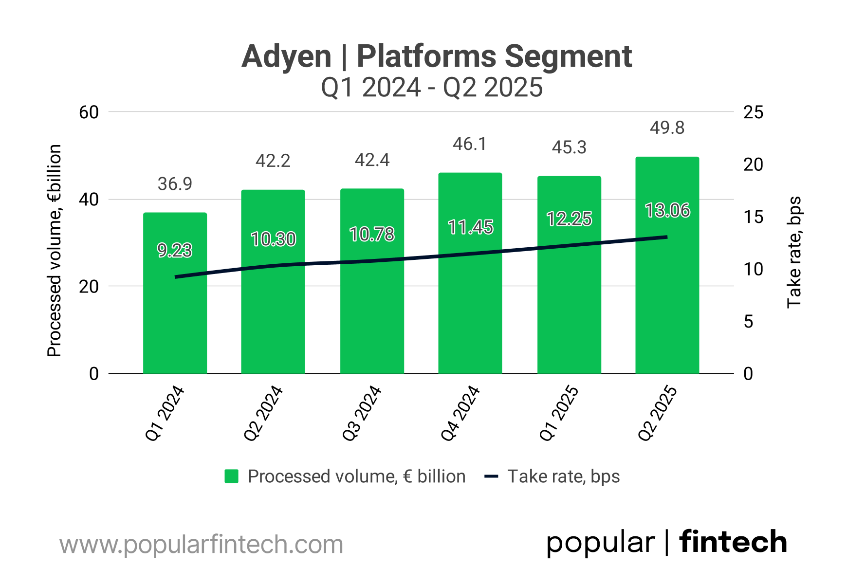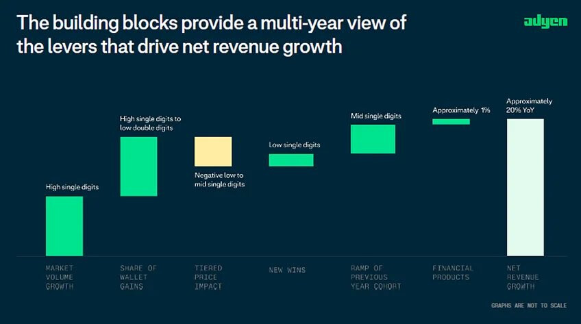 Adyen’s volume of processed payments has grown enormously; to almost 200 billion euros per year.