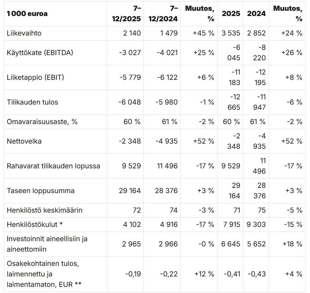 I juli-december steg koncernens omsætning med 45 procent og udgjorde 2 140 (1 479) tusinde euro.