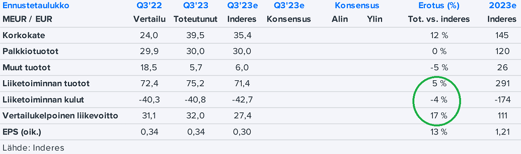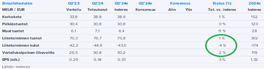 Vaatisi varmaankin lainakannan kasvua korkotuottojen ollessa paineessa viime aikoina. Kvartaalin loppupuolisko vaikutti jo paremmalta, joten ehkäpä tilanne stabiloituu jossain vaiheessa. Varainhoitohan on iso osa kokonaispotista, joten mikäli markkinat tästä piristyvät saattaa tältä suunnalta tulla apuja