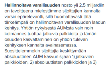 Tuo AUM on mielestäni lopulta kohtuullisen merkityksetön, ohessa suora lainaus raportista: