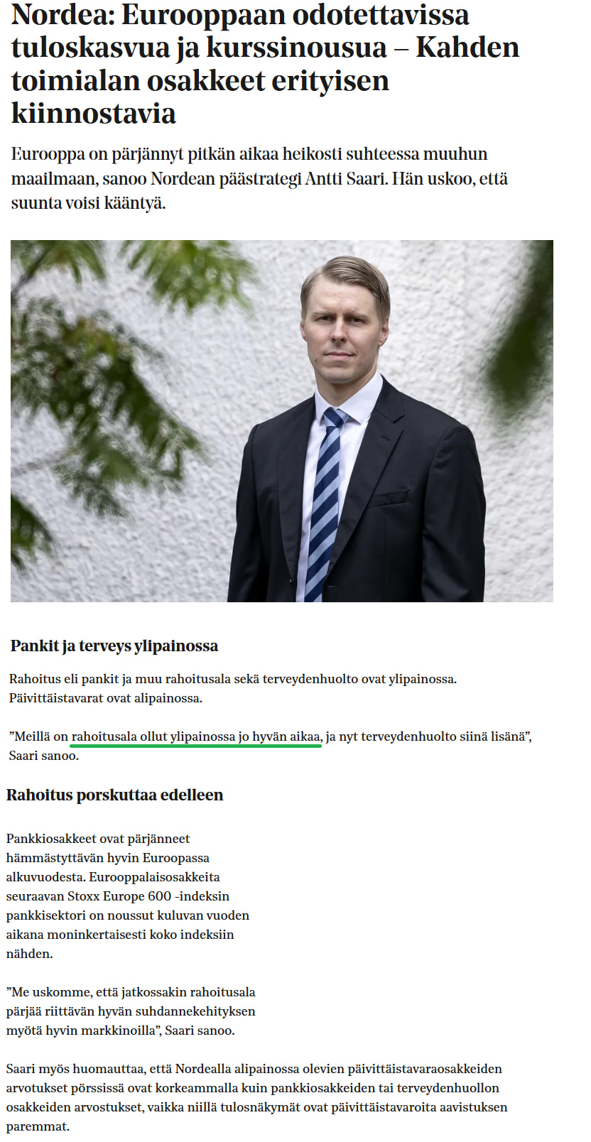 The volume growth of invoice financing for corporate customers (which is now part of the core business after the sale of non-core assets) is increasingly important for the bank to be able to turn its results positive again. I personally cannot think of a single better, larger, or more international partner for Alisa than Nordea. Nordea is known to Alisa’s management, and they know what Nordea wants from Alisa in the future. Alisa’s CEO has had a long career at Nordea and Danske Bank in various leadership roles. As a partner of Nordea, growing volumes and internationalization depend solely on their own actions.