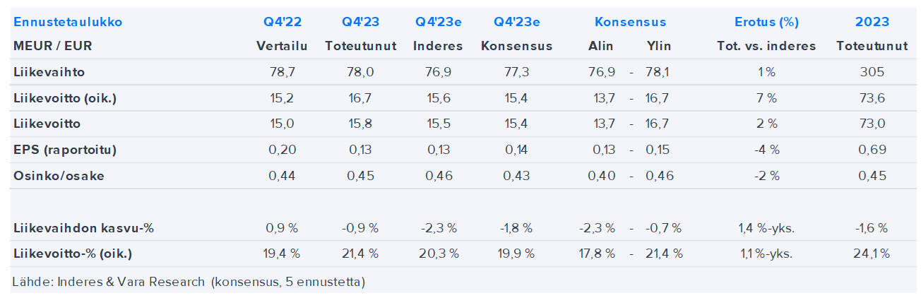 Alma Median Q4-tulos, voitonjako ja myös kuluvalle vuodelle annettu ohjeistus olivat hyvin linjassa odotuksiemme kanssa, kun huomioidaan pieni yrityskauppa, joka ei ennen Q4-raporttia ollut vielä ennusteissamme. Vakuuttavan kannattavuuskehityksen myötä olemme tehneet pieniä ennusteiden nostoja operatiivisen kannattavuuden ennusteisiimme lyhyelle ja pitkälle tähtäimelle.