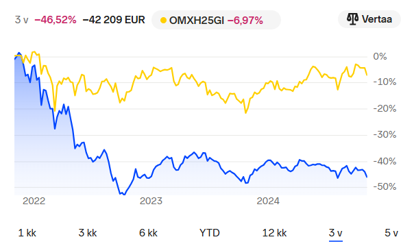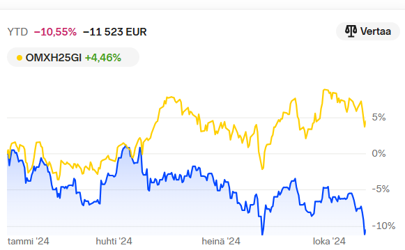Sitten alkoi vähän fiksumpi vaihe, kun aloin seurata Indeä. Koronassa olin vähän myynneissä myöhässä, mutta enemmän onnistuin pohjilta ostamaan, kun myöhästyminen ei haitannut niin paljon esim. Elisan myymistä sen syklinkestävyyden vuoksi. Silloin Fortumia, Nordeaa, Outotecia sisään ja sitten Outokumpua. Jälkimmäiset ulos pari vuotta sitten ja Faronia ja Aiforiaa sisään. Sijoitusideoita on tullut Indeltä moniakin, bumtsibum-osakkeisiin en mennyt, mitä nyt vähän Smarttiin. Siitä tappiot ja uudelleen alempaa sisään revanssimentaliteetilla. Jos nyt ainakin hallituspaikan SEYE Yacht Clubiin saisi.