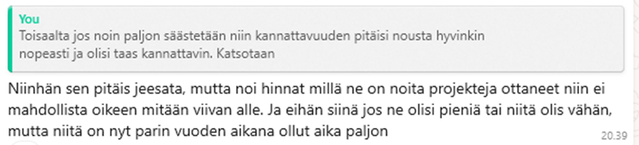 Kyllä ne asiat tulee tuolta yhtiön tilinpäätösraportoinnin ja DCF-mallinnuksen kautta. Kaikki oikaisut, raportointikäytännöt, tilinpäätöksen erät ja DCF-mallin rakentaminen. Näitä toki opiskeltu myös kauppakorkeassa, mutta konkreettinen työ on opettanut paljon. Nyt analysointi käy myös muiden yhtiöiden osalta helpommin, eikä tarvitse tuijottaa tilinpäätöksistä vain liikevaihtoa ja tulosta, vaan pääsee paljon syvemmälle.