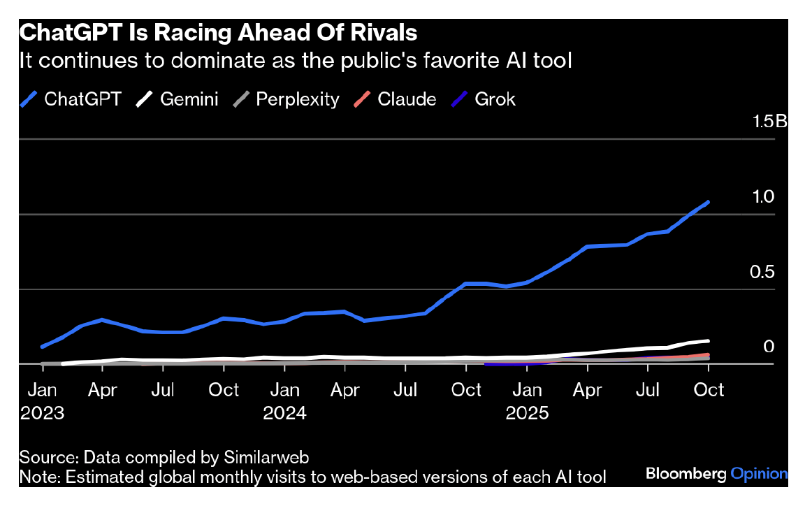 ChatGPT on edelleen ylivoimaisesti suosituin chatbot, tai ainakin oli lokakuuhun asti.