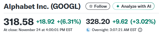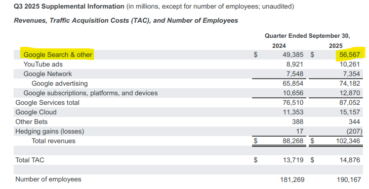 Alphabetin liikevaihdosta noin 75 % tulee mainnonnasta ja kasvava chatbottien käyttö haastaa perinteistä sponsoroitujen linkkien yms. nostamista esille hauissa. Vielä keväällä Geminiä ei pidetty parhaana mallina, toisin kuin toistaiseksi nyt. Melko suuri lohko yhtiön liikevaihdosta oli, ja osin on edelleen, siis logiikaaltaan kysymysmerkin alla.