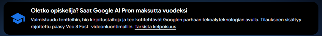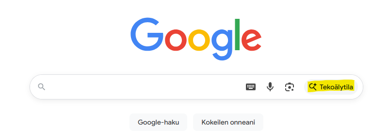 Niin nyt voi mennä erilliseen tekoälytilaan tekemään haun.