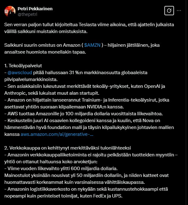 Here’s a tweet from Petri Pekkarinen about Amazon, it’s nice to sometimes have content in Finnish about these foreign companies. ![]()