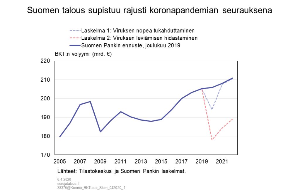 Minusta kuitenkin nyt näyttää siltä, että pahin ehtii jo tapahtua eli korkeaksi nouseva työttömyys tulee aiheuttamaan ison loven talouteen, mikä tarkoittaa hidasta toipumista vaikka yhteiskunnat saataisiinkin avattua nopeasti.