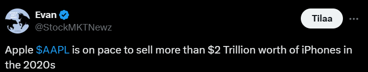 Analyytikko Edison Lee arvioi iPhone-odotusten olevan liian korkealla ja laski tavoitehinnan selvästi alle nykykurssin. Tämä siis tarkoittaisi yli 20 % laskuvaraa Applen osakkeelle.