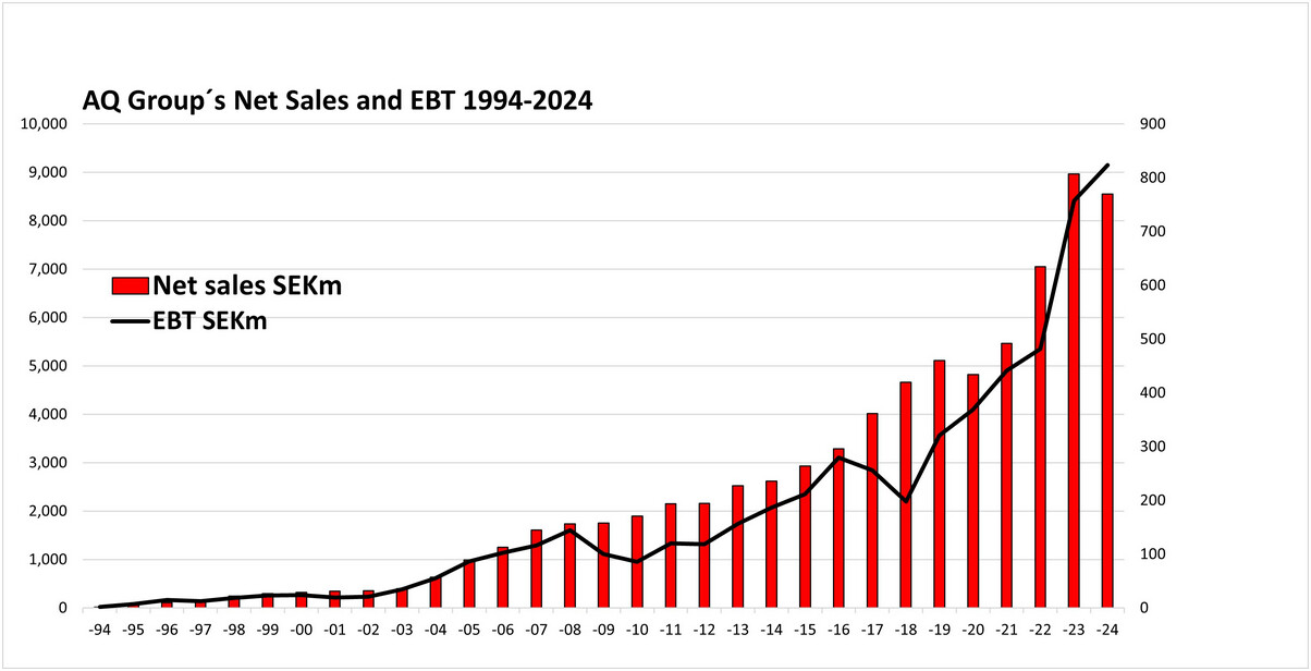 AQ Group AB is a Swedish contract manufacturer that designs, manufactures, and assembles electrical and mechanical components and systems for demanding industrial customers. The company was founded in 1994 under the name Aros Quality Group by combining Aros Kvalitetsplast AB, ABB Industrial Systems’ transformer business, and ABB Relays’ accessories department. Since its inception, AQ has grown steadily and profitably. AQ has production in 17 countries in Europe, Asia, and the Americas, supporting “near-customer” deliveries.