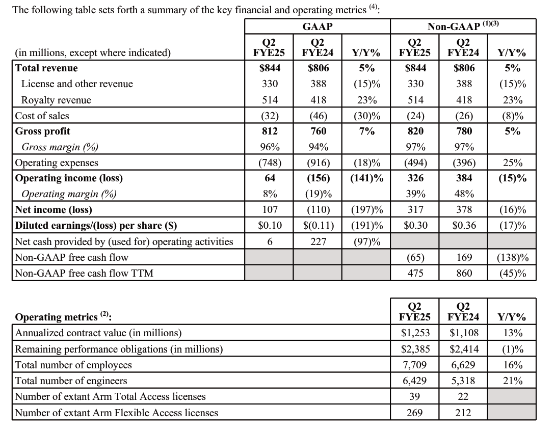 Arm had a pretty decent quarter, as total revenue grew significantly from the previous year and exceeded the one billion dollar mark for the first time. Growth was particularly driven by license and royalty revenues, both of which rose to new records.