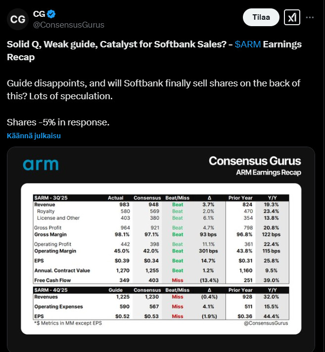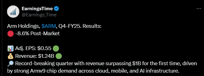 ARM released a new earnings report yesterday, which exceeded expectations in terms of both revenue and EPS. The guidance did not please the markets.