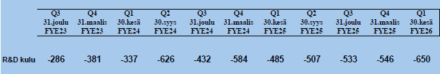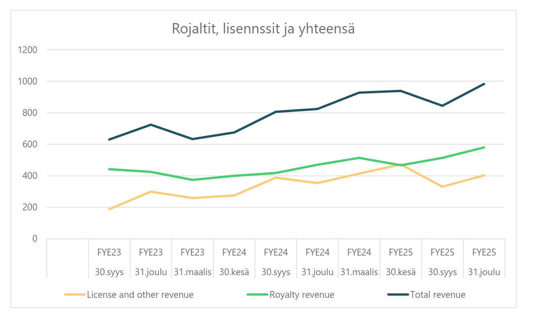 Quarterly results are out. That is, Q2 FY2025. What immediately stands out from the figures is that the company is in R&D mode. R&D headcount has been increased and the operating margin—is that EBITDA then—has dropped. Steady growth in royalties (23% y-y) is a plus in otherwise lackluster numbers. But I need to take a closer look when I have more time to see what the company is actually up to now.