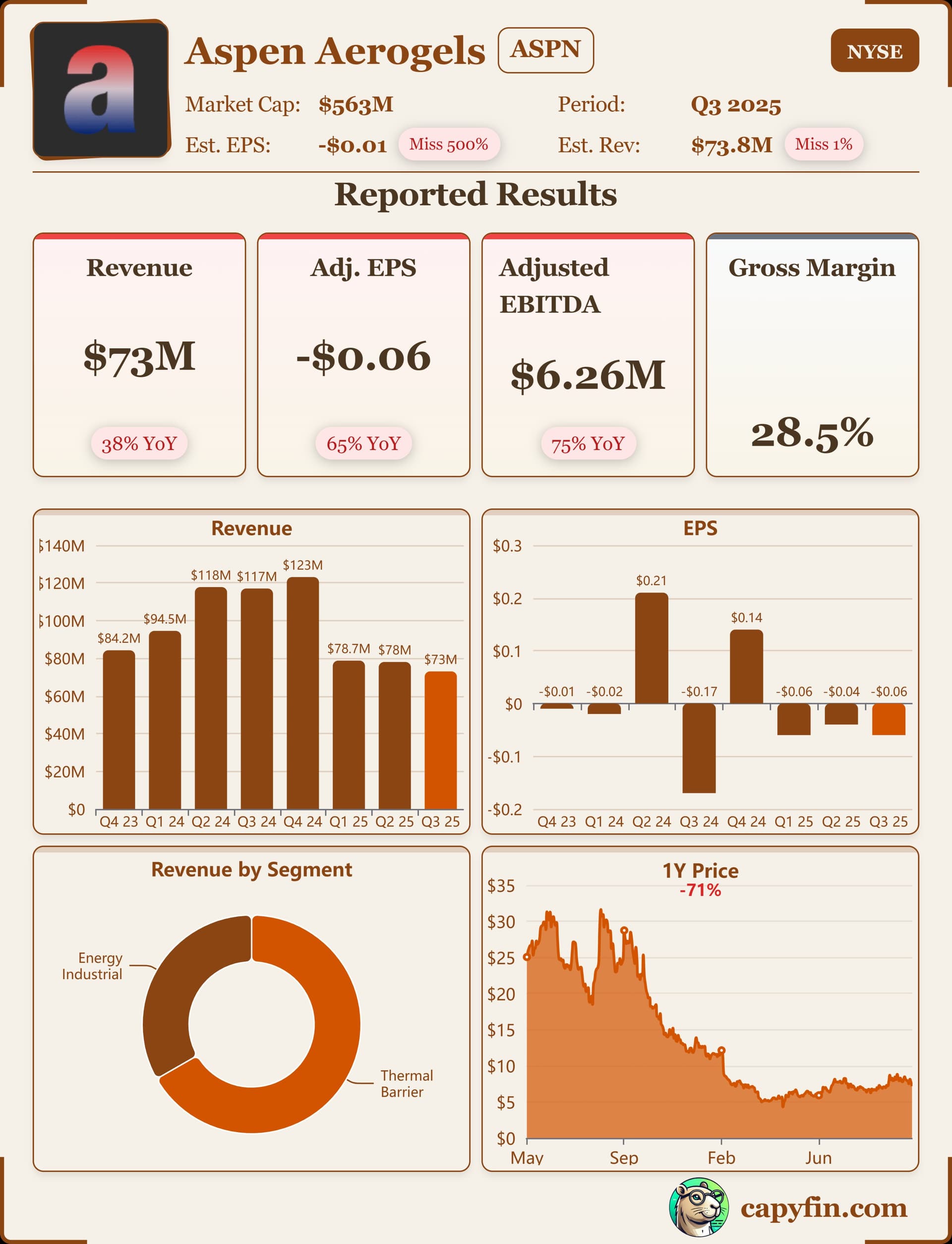 Aspen Aerogels on vuonna 2001 perustettu yhdysvaltalainen yritys, joka erikoistuu aerogeelipohjaisiin eristystuotteisiin. Yrityksen pääkonttori sijaitsee Northboroughissa, Massachusettsissa, ja sen toiminta keskittyy aerogeelien kehitykseen, valmistukseen ja kaupallistamiseen. Aerogeelit ovat erittäin huokoisia ja kevyitä materiaaleja, jotka tarjoavat erinomaisen lämmön- ja palonkestävyyden. Aspen Aerogels tunnetaan erityisesti innovatiivisista, ympäristöystävällisistä ratkaisuistaan, joilla voidaan parantaa energiatehokkuutta monilla eri teollisuudenaloilla.