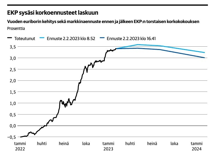 Löytäisikö joku ajantasaista markkinaennustusta euriborien kehitykselle? Yritän laskea, onko tuossa 3kk kuitenkaan järkeä, jos korkoja nostetaan vielä tämän vuoden puolella.