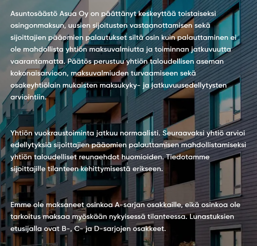 Karo har tilsyneladende spottet denne Asuntosäästö sidste forår og skrevet sine egne tanker. Værd at læse.