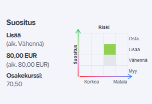 Mutta, minua suunnattomasti ihmetyttää tämä liiketoimintakatsausten yltiöpositiivisuus. Tämänkaltaiset ilmaisut ei minusta kuulu liiketoimintakatsauksiin: "Kauden tulosta ja sen vertailua viime tilikauteen rasittaa kohonnut korkotaso. Korkojen nousu vaikuttaa tietysti kaikkiin markkinatoimijoihin, ennemmin tai myöhemmin." Mitä tällä yritetään sijoittajille viestittää? Sitäkö, että älkää sijoittako muihin vaan meihin? Jotenkin tässä yltiöpositiivisuudessa omiin silmiin paistaa, että pörssissä uusi yhtiö haluaa kiillottaa mainettaan etenkin kun listauksen jälkeen kurssikehitys ei ole ollut kovin mairittelevaa.