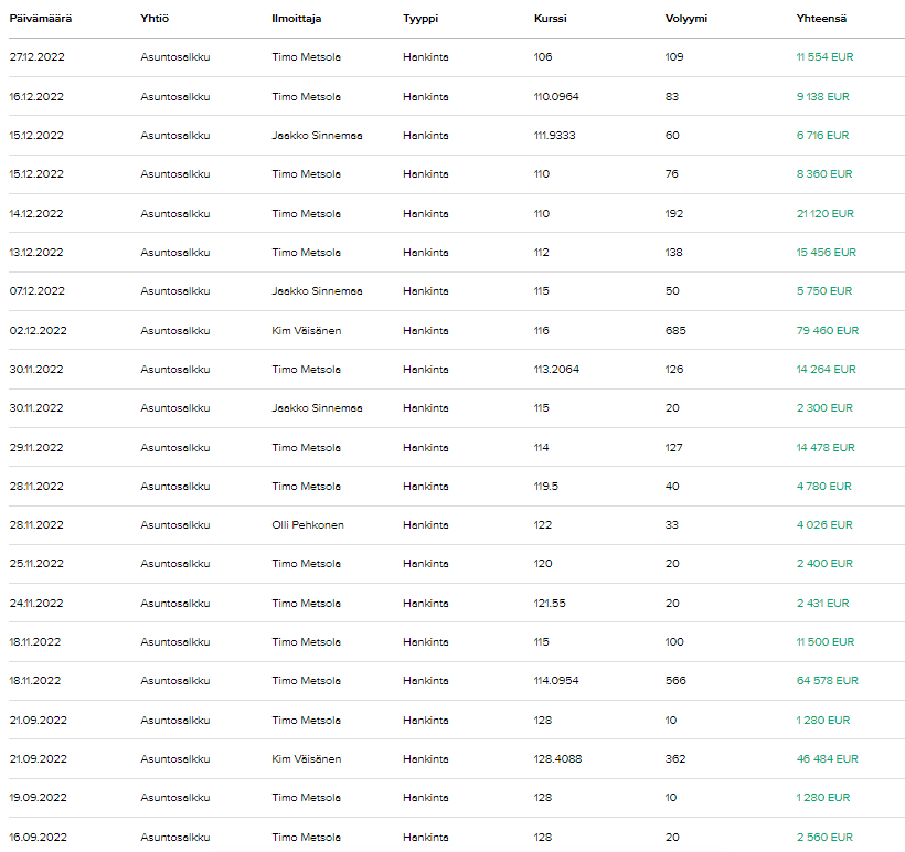 Metsola & Sinnemaa’s Housing Portfolio (Metsola & Sinnemaan Asuntosalkku) is not convincing. Still completely overvalued. They emphasize and highlight Tallinn as an opportunity, but it’s likely the biggest bubble in the housing market. They’re selling a Lada with a wooden steering wheel as a Mercedes here. Friends as the largest shareholders.