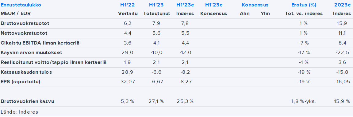 Asuntosalkku’s H1 proceeded mainly in line with our expectations, and the big picture in the forecasts has remained unchanged. Based on forecasts for the coming years, Asuntosalkku is valued at a clear discount to adjusted NAV (2023-2024e: P/NAV 0.63x-0.65x), but considering the lackluster return level and challenging FFO-based valuation, it is difficult to see significant upside in the share.