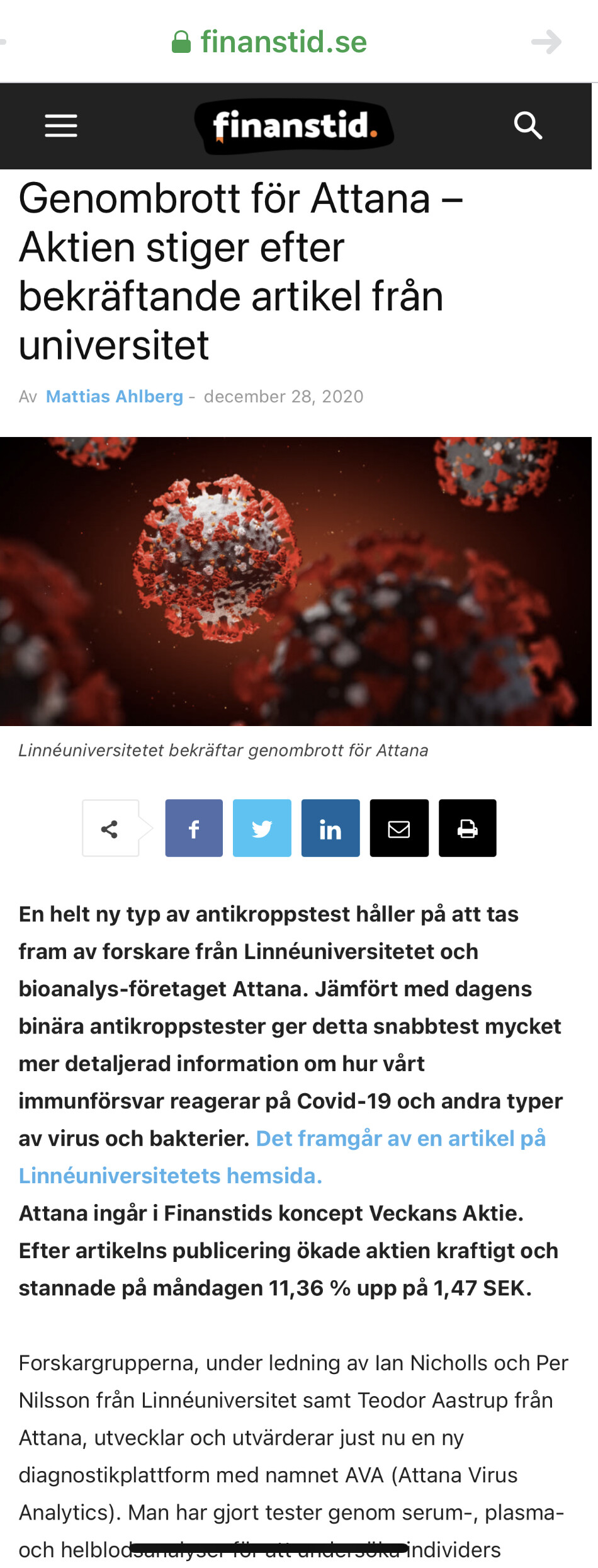 Attanalla on ollut tuo pikatesti valmiina jo melkein koronan alusta alkaen ja silloin jo Teodor kertoi että se testi näyttää samalla kertaa kaikenmahdollisen vasta-aineista lähtien ja en ole kuullut että sitä olisi edes missään otettu käyttöön, kummallista. No jospa ne on nyt “huomannut” tämän Attanan pikatestin ja sitä aletaan oikeasti käyttämään, ymmärtääkseni kattavan testituloksen saa tipasta verta sormenpäästä, eikä tarvi alkaa mitään tikkuja työntämään aivoihin asti niinkuin tähän asti on koronatesti tehty.