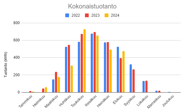 Aurinkopaneelien kannattavuuslaskelmaan tuolla on toki vaikutusta, koska omaan käyttöön tuleva tuotanto kevät-kesäaikaan tulee laskettavaksi korkeammalla hinnalla. No, voihan näitä edelleen pyöritellä haluamallaan tavalla, mutta tässä minun faktat kahdelta vuodelta: