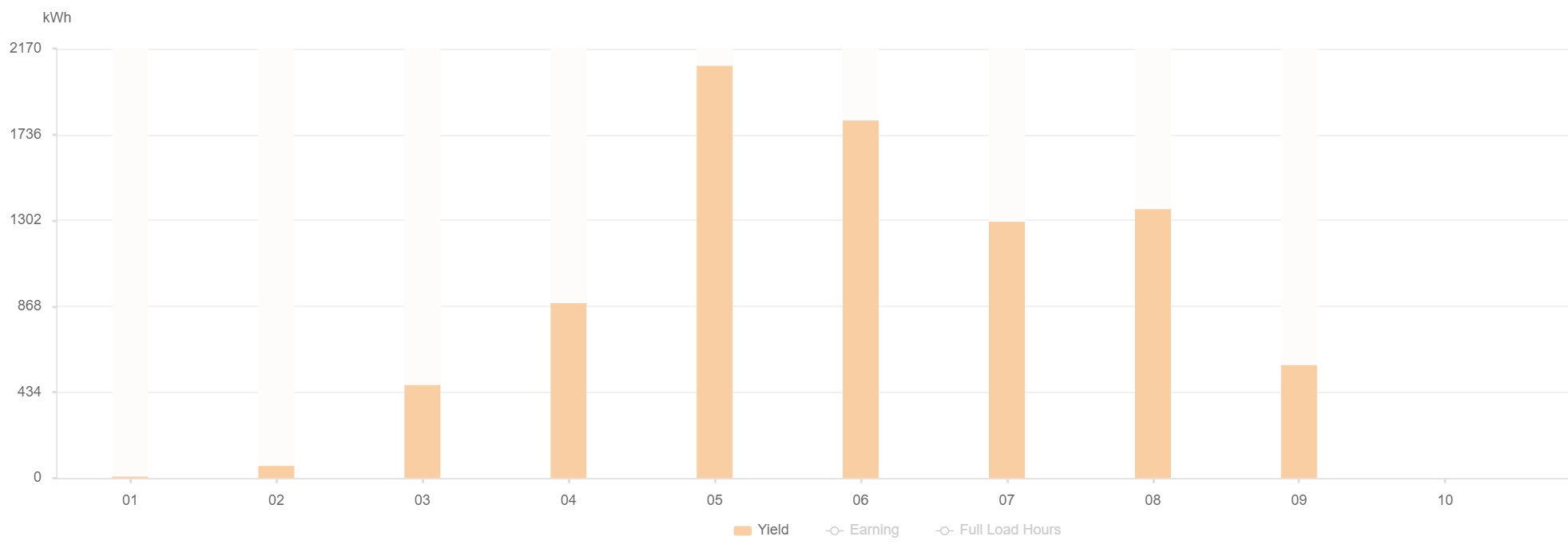 Toukokuu oli tänä vuonna erittäin aurinkoinen, lisäksi se yleensäkin viileämpi kuin kesä- ja heinäkuu, jolloin paneelien hyötysuhde on parempi (kuten jo mainittiinkin). Huhtikuu on myös lähes kesäkuukausien veroinen, kunhan ei ole tämän vuoden kaltaista takatalvea.