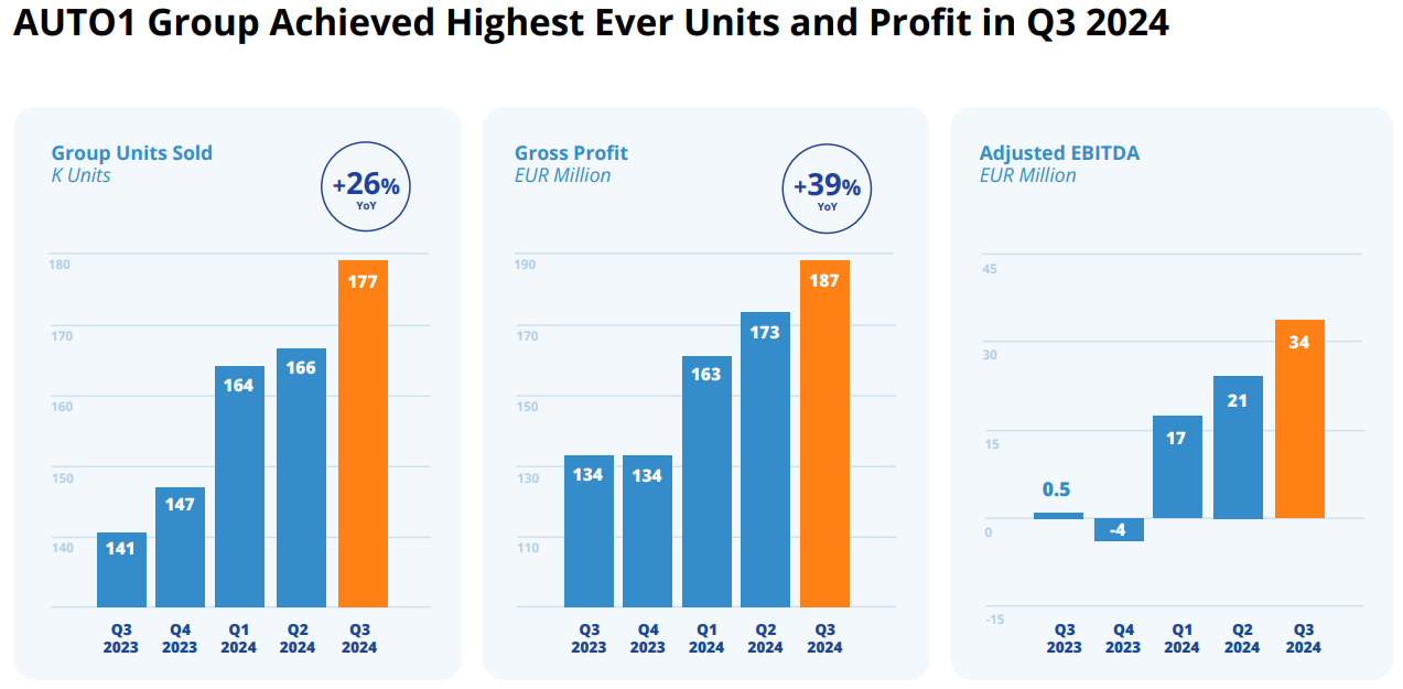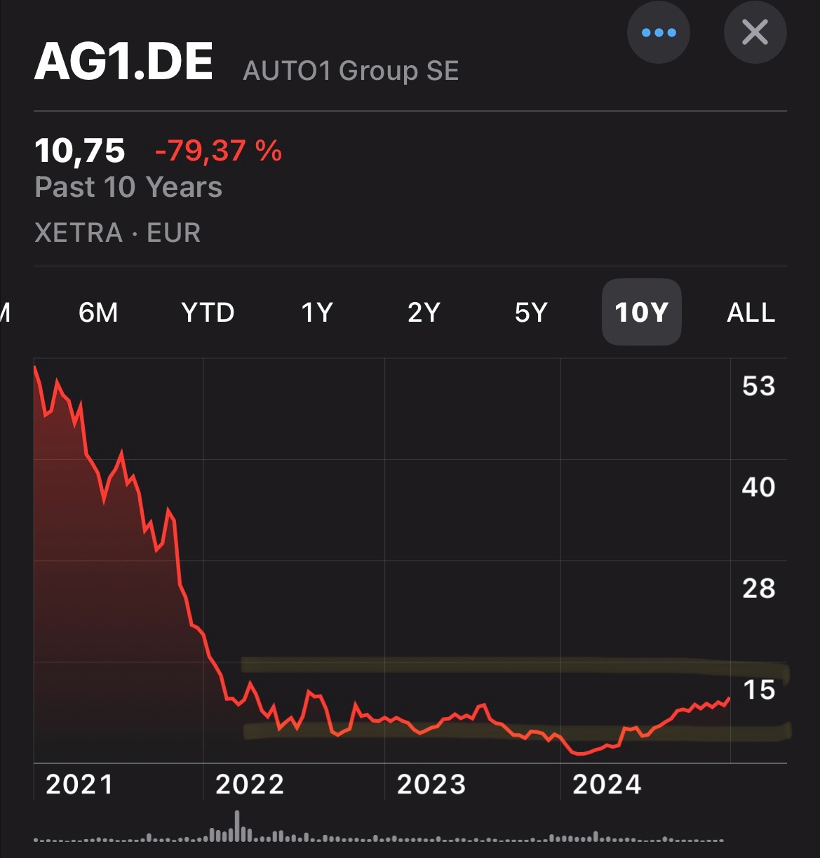 Auto1:n toiminta-alueella myytyjen käytettyjen autojen osuus oli 2019 (pre-covid) noin 29,2 miljoonaa autoa. Markkinat ovat vasta normalisoitumassa Covidin jälkeen ja 2024 lukema on asettumassa noin 27 – 28 miljoonaan autoon. Auto1:llä arvioidaan olevan tästä noin 2,5% markkinaosuus.