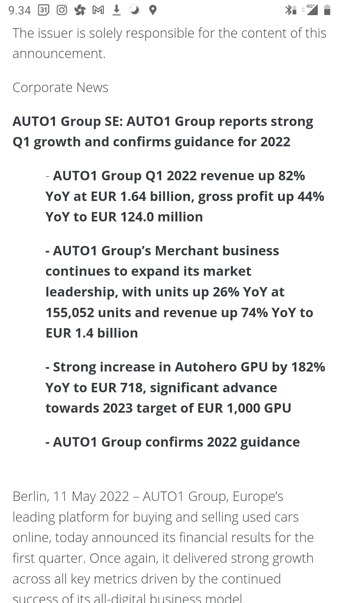 - AUTO1 Group øger omsætningsforventningerne for 2022
