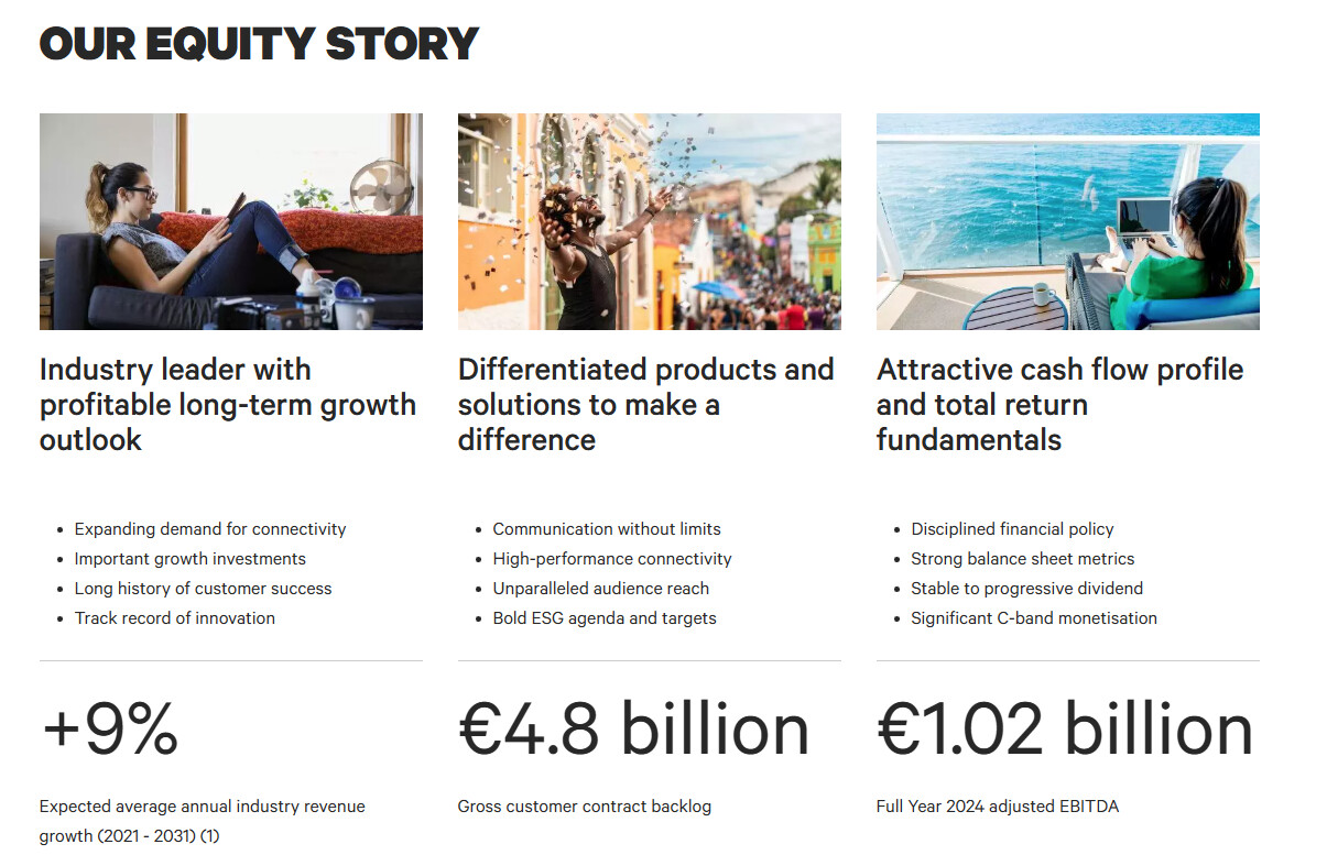 Så vidt jeg forstår, er de en peer til Eutelsat, omend en smule større og mere stabil. Jeg er lige begyndt at grave i det her, men jeg ville straks kaste det ud til forummets kollektive intelligens til vurdering. Jeg kopierer nogle basale ting om virksomheden nedenfor. Det er værd at bemærke, at SES for nylig har gennemført opkøbet af sin største konkurrent, Intelsat, og er ved at fusionere dennes forretning ind i sin egen.