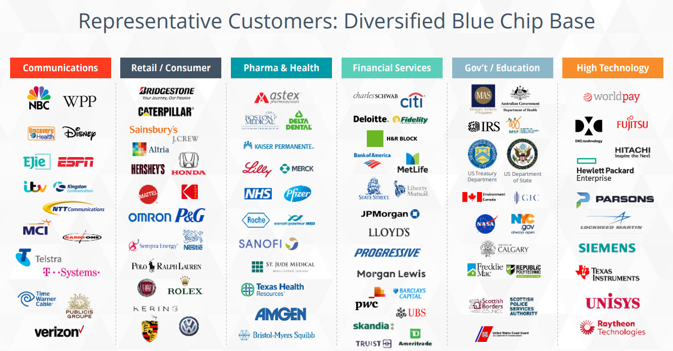 Asiakkaina on mm. 25% Fortune 500 -yrityksistä, joten luottoa löytyy tekemiseen asiakaskunnan puolelta.