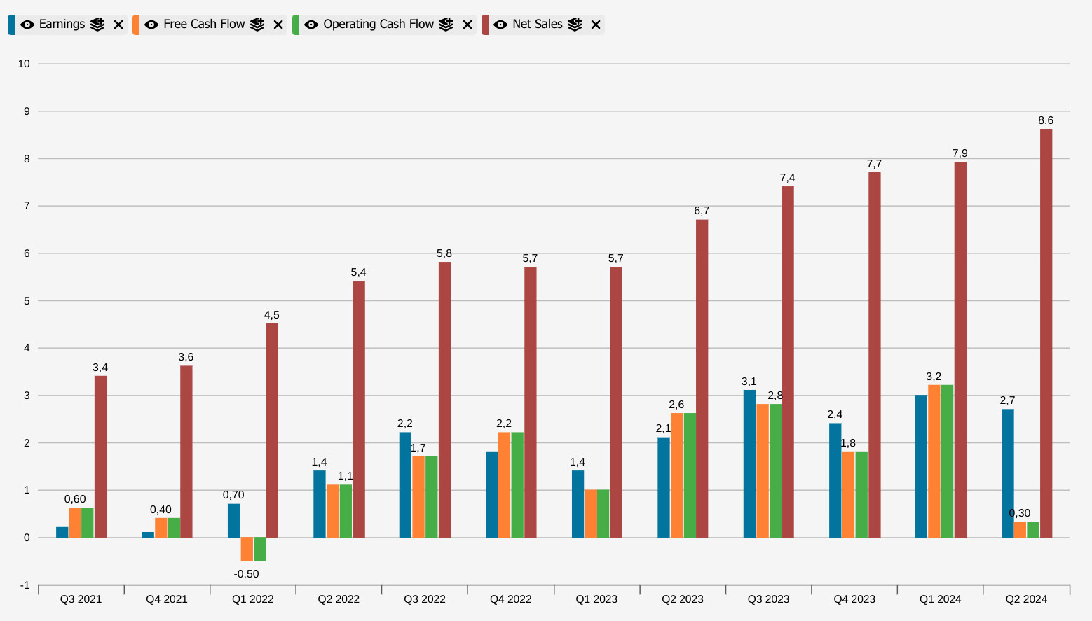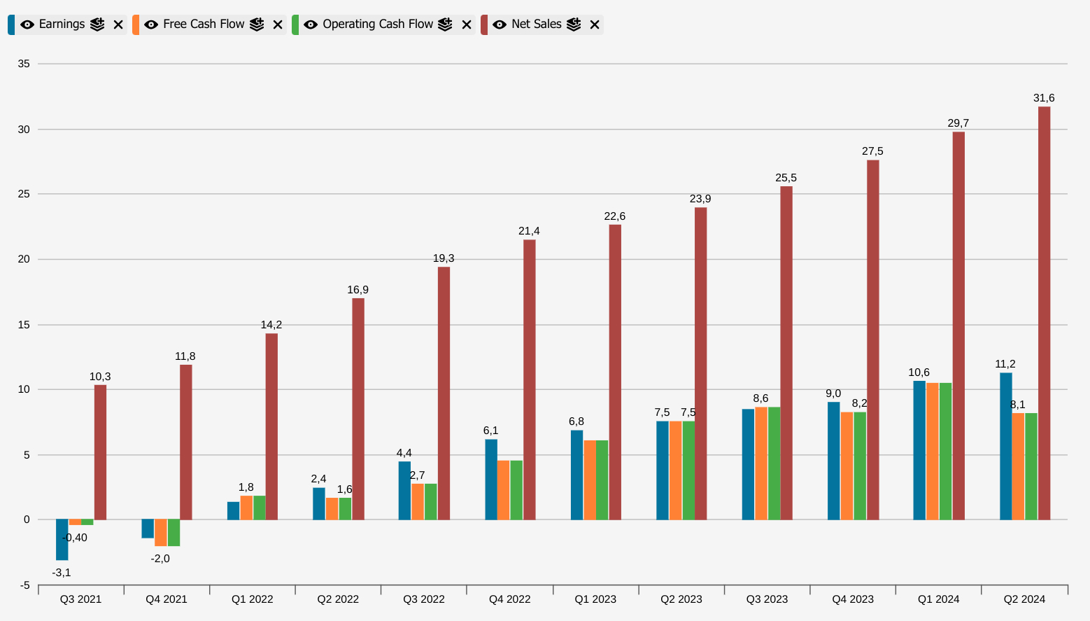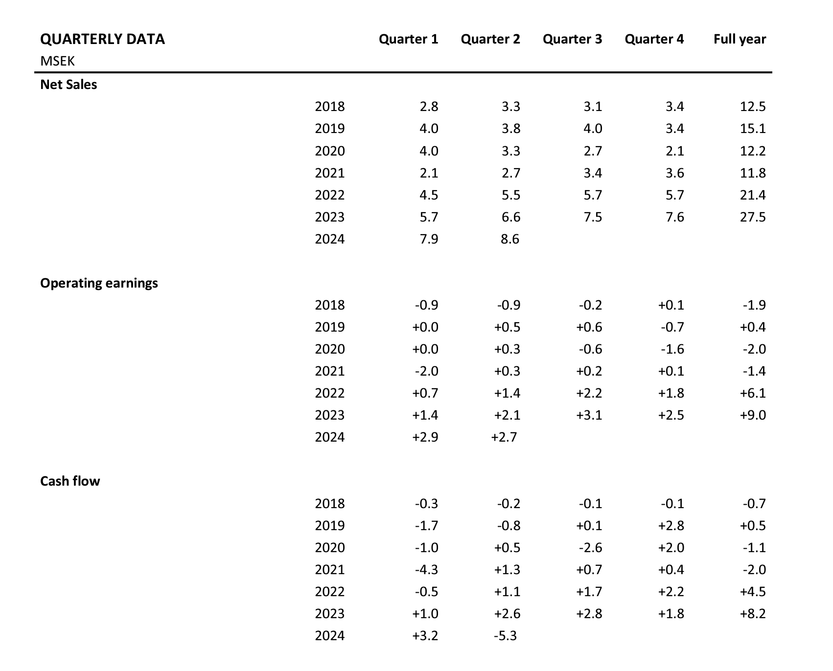 Tässä on vielä kuvakaappauksena Q2-raportista yhtiön historiallinen kehitys numeroiden valossa: