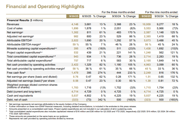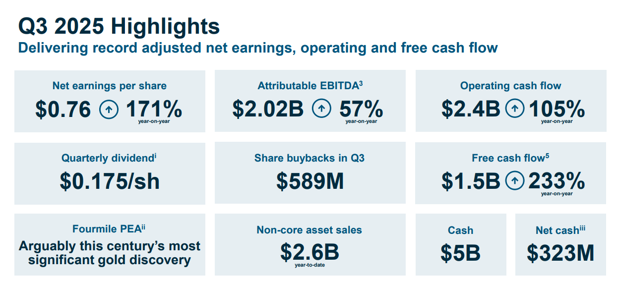 Higher gold production than before, lower costs, and better prices raised cash flow to a record level. In addition, the company increased its dividend and expanded its share buyback program, which may highlight confidence in future development.