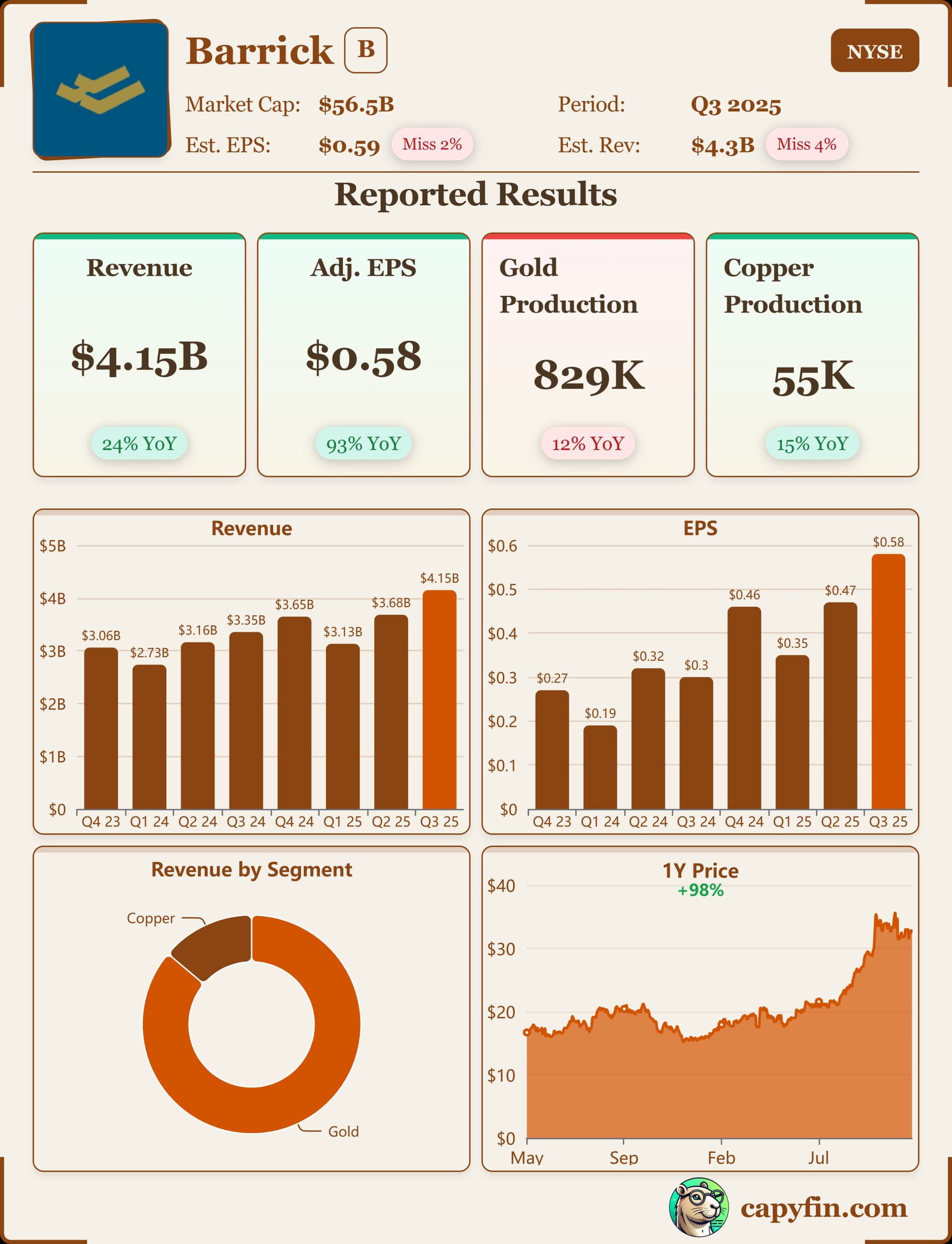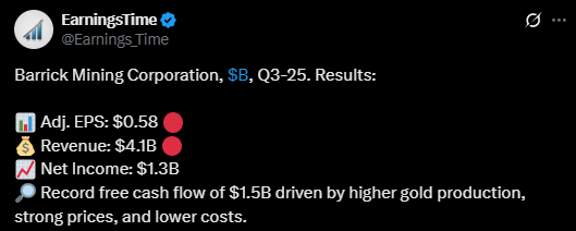Barrick Mining posted a good result, even though revenue fell slightly short of expectations.