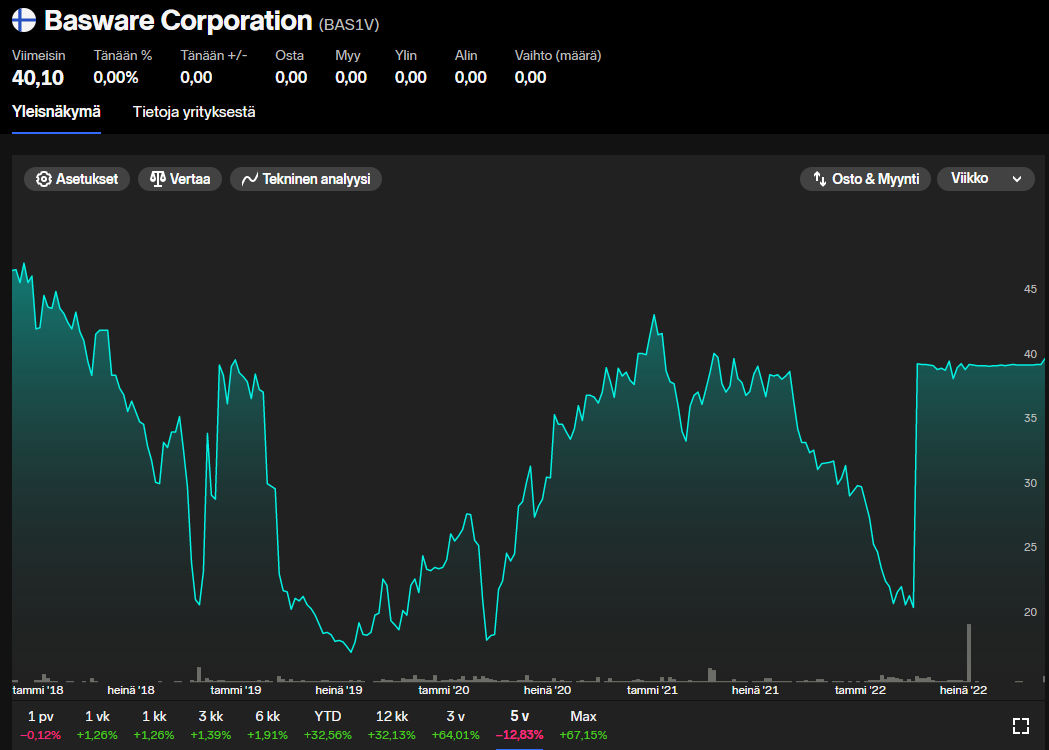 Baswarea on enää turha yrittää ostaa pörssistä, kaupankäynti on päättynyt 40,10 EUR lunastukseen.