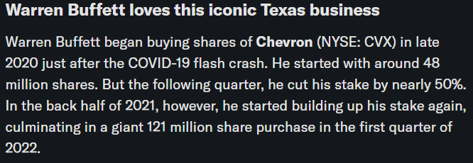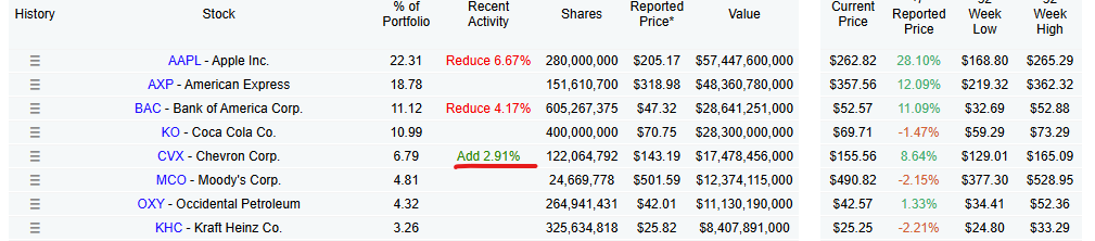 Buffett aloitti sijoitukset jo 2020 noin viiden prosentin osuuksilla ja on sittemmin kasvattanut niiden vähän lisää. Hänen mukaansa nämä osakkeet ovat sellaisia, lisäksi tarkoitus on pitää ne “50 vuotta tai vaikka ikuisesti”.
