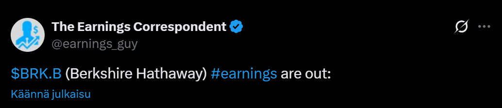 Berkshire rapsas ihan hyvän tuloksen, jossa vakuutustoiminta, rautatiehommat ja teollisuusvetoinen liiketoiminta vetivät tulosta ylöspäin. Liikevoitto kasvoi reippaasti ja vakuutuspuoli teki selvän loikan parempaan. Sen sijaan energiahommien saralla meni heikommin, vaikka alkuvuosi on sielläkin plussalla.