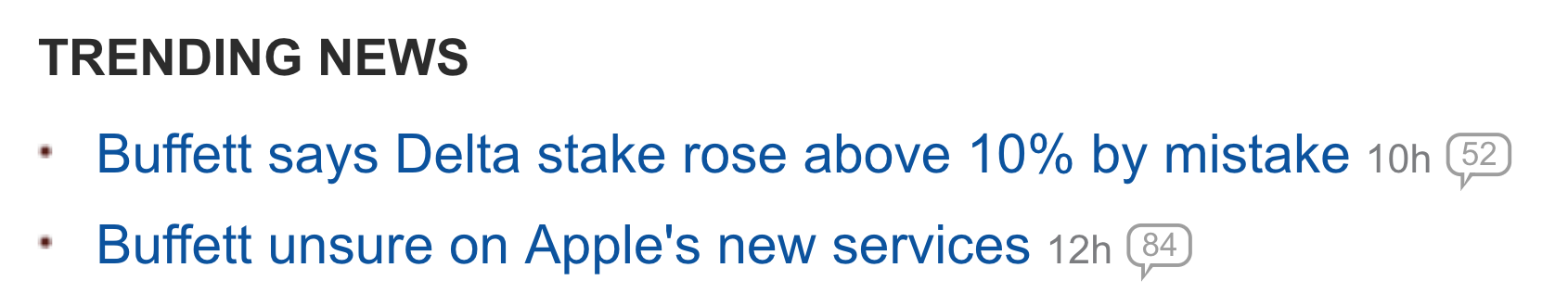 Teknologiaosaamisen puute: Buffettin seikkailu IBM:ään ei mennyt hyvin, ja Apple-omistusta on myös kritisoitu. Teknologian paino indeksissä on kuitenkin suuri, mikä lienee osin selittävä tekijä miksi Berkshire on jäänyt jälkeen viim. 10 vuoden aikana.