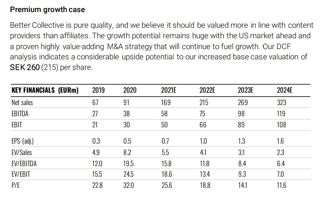 Better Collective, joka toimii iGamingissa ja liidien generoinnissa, panostaa voimakkaasti yritysostovetoiseen kasvuun. Stockpicker nostaa suosituksensa yhtiöstä OSTA-tasolle, mutta jättää tavoitehinnan 250-260 kruunuun. Odotamme selkeitä merkkejä onnistuneista yritysostojen integraatioista ennen kuin tavoitehintaa nostetaan.