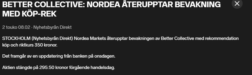 Osari oli omasta mielestä ihan kohtuullinen, etenkin kun Googlen pelättyjä muutoksia kommentoitiin näin: Since the changes were announced, Better Collective has delivered group revenues, EBITDA and NDCs as expected prior to these changes, and the impact has been fully mitigated on a Group basis resulting in a net zero financial impact.