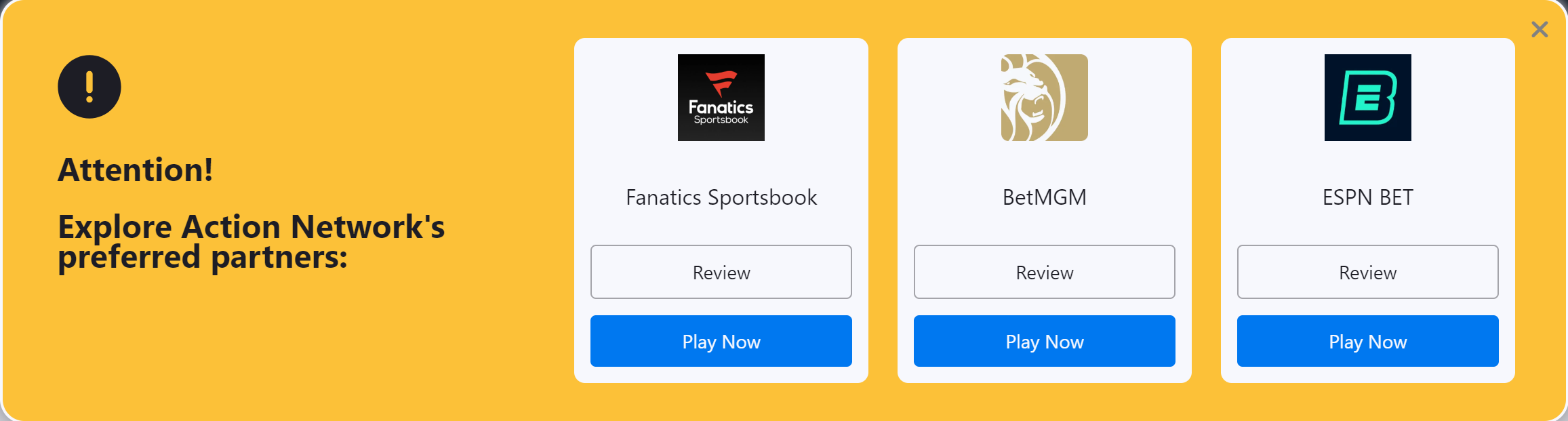 This is what it looks like now. Caesars, ESPN Bet, and FanDuel have been removed from the list, but they are clearly still partners. A promo code and link can be found on the main page for each of them.